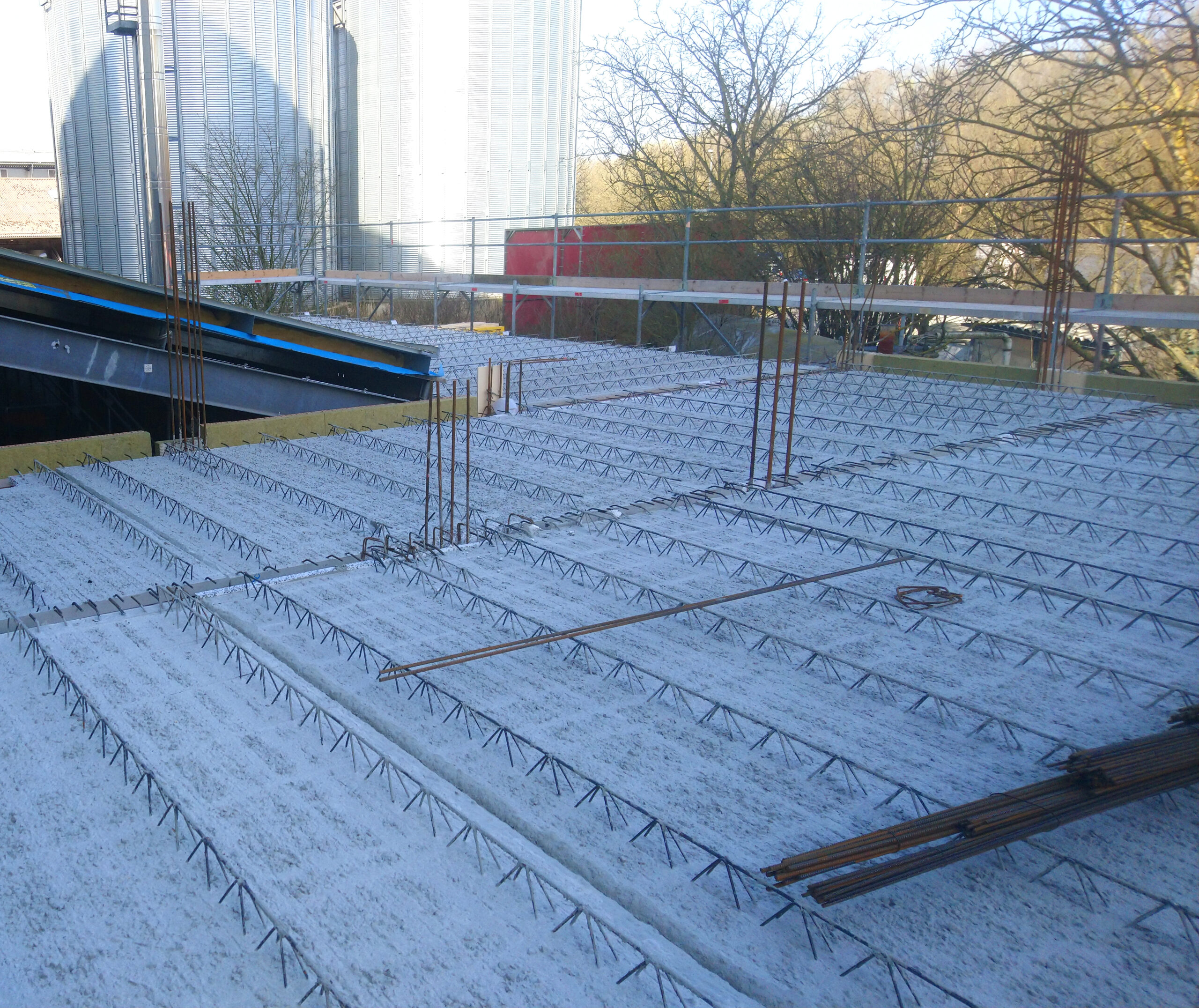 Mit dem neuen Verwaltungsgebäude wurden moderne Büroräume, Umkleidekabinen und Sanitär-Anlagen im Gewerbegebiet geschaffen. Der Anbau passt sich an die vorhandenen Lagerhallen und Bürobestände optisch, sowie funktional an.
